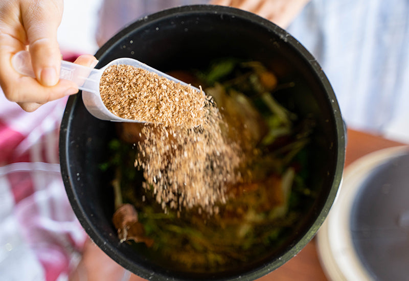 Koristni mikroorganizmi v posipu delujejo kot čarovnija, saj spreminjajo odpadke v nov vir življenja. Posipanje je torej ključnega pomena za pravilno fermentacijo in preprečevanje gnitja odpadkov. Zelo pomembno je, da pred prvotnim polnjenjem in vsakič, ko vanj odvržeš odpadke, dodaš zadostno količino Bokashi posipa (biogena).